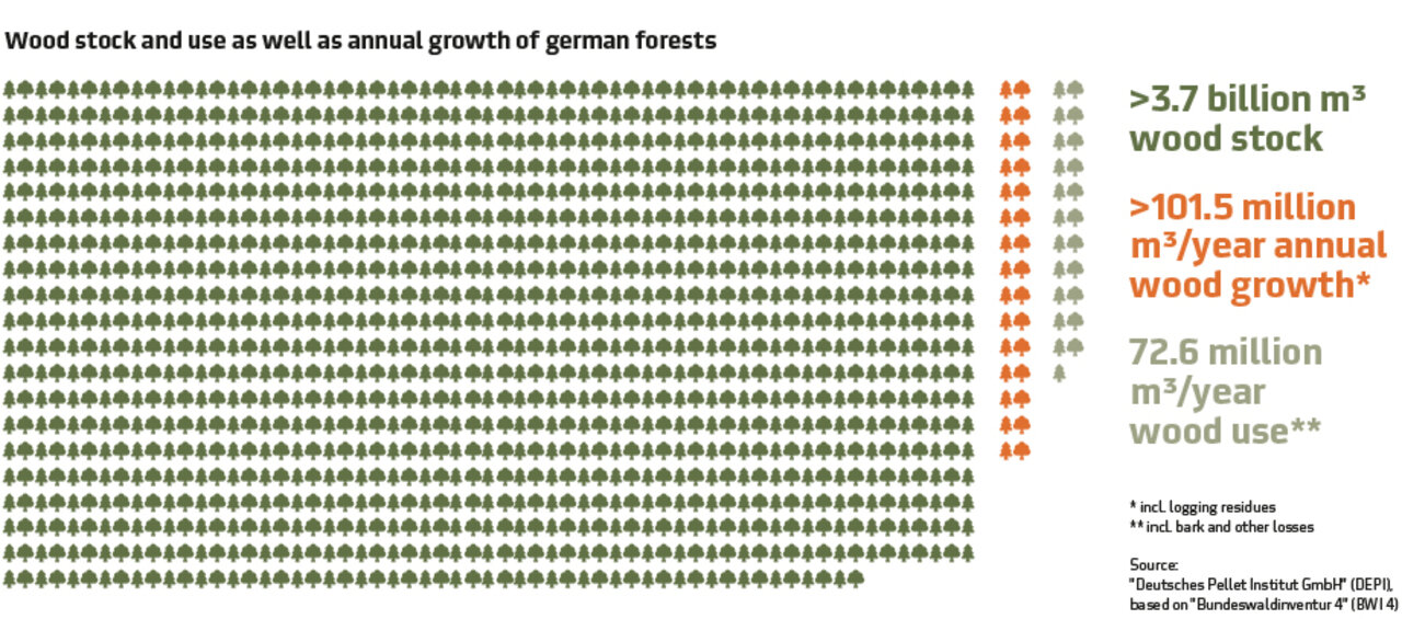 With over 20 million tons of pelletizable wood residues generated annually in Germany, there is still a gigantic potential available for the heat transition with wood pellets. Strict legal requirements for sustainability ensure that only as much wood is removed as can regrow. The clear-cutting of forests is prohibited by law.